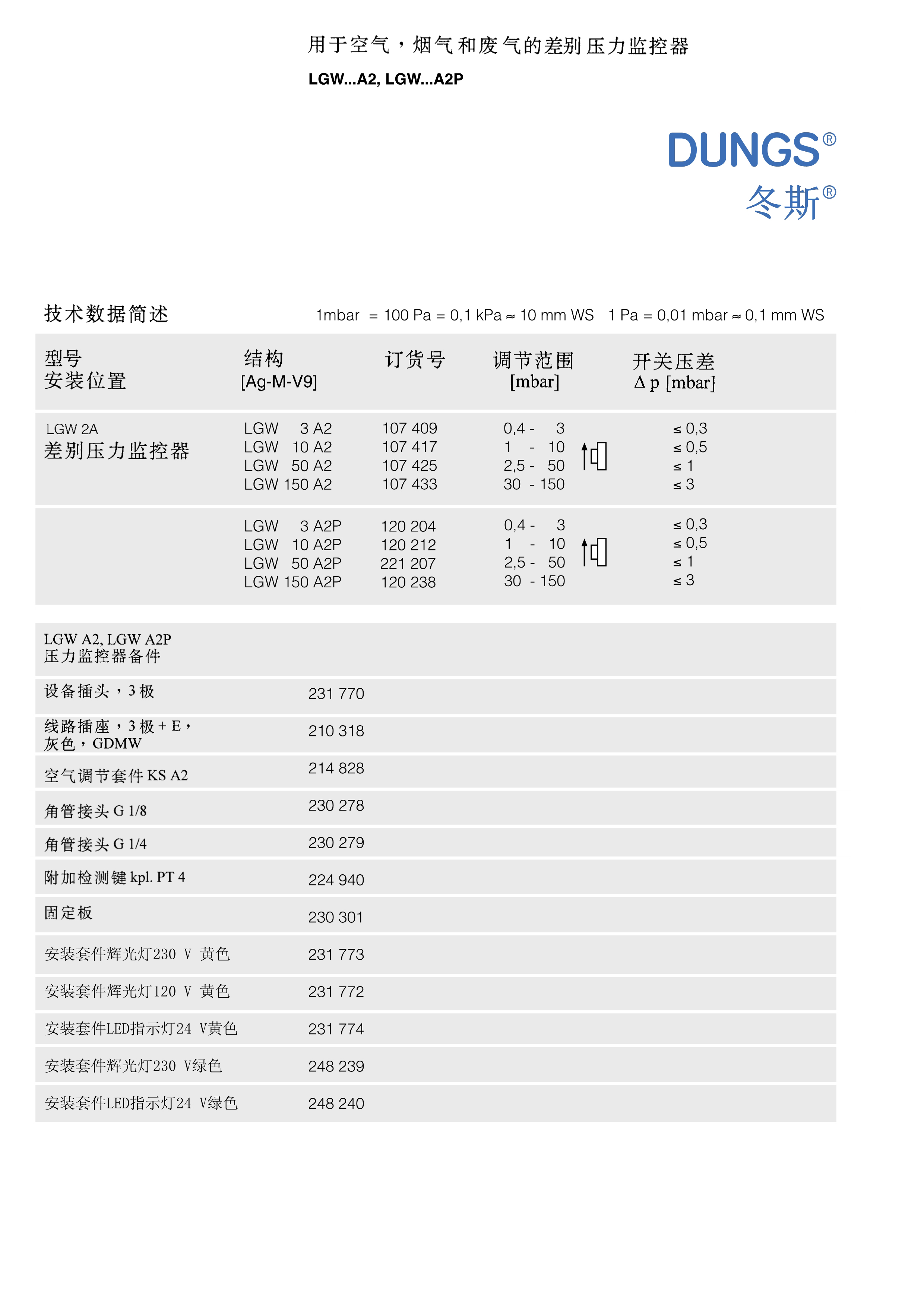 冬斯LGW10A2P燃氣壓力開關(guān)