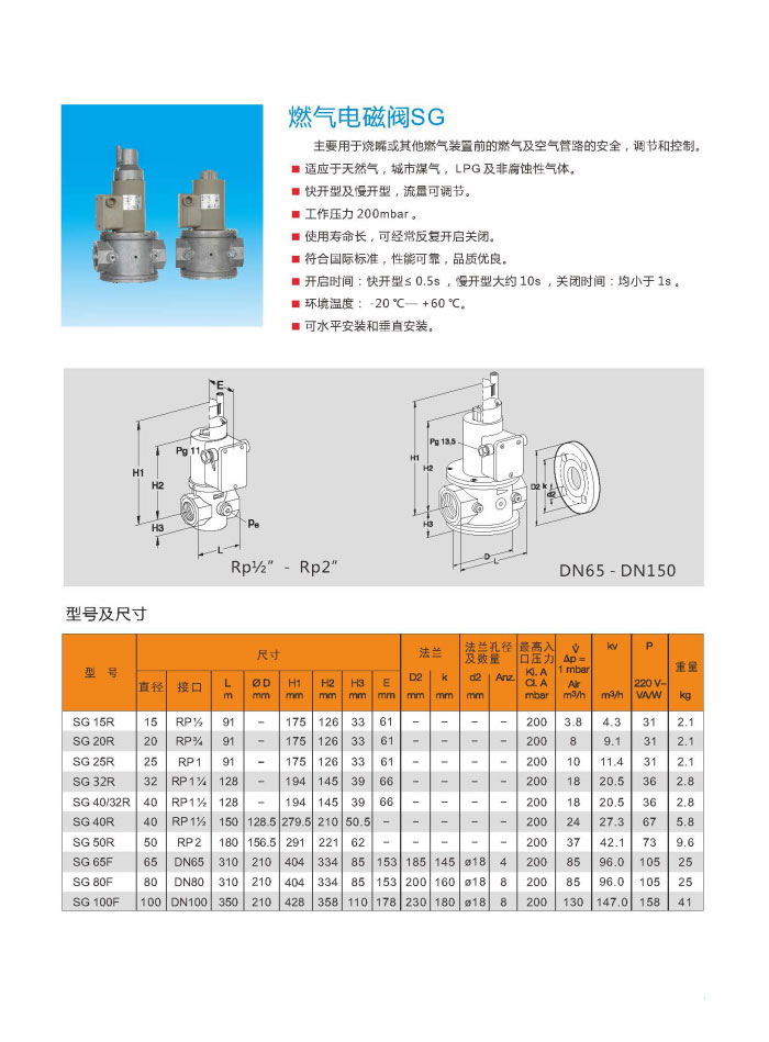 施能SG系列慢開快閉燃氣電磁閥