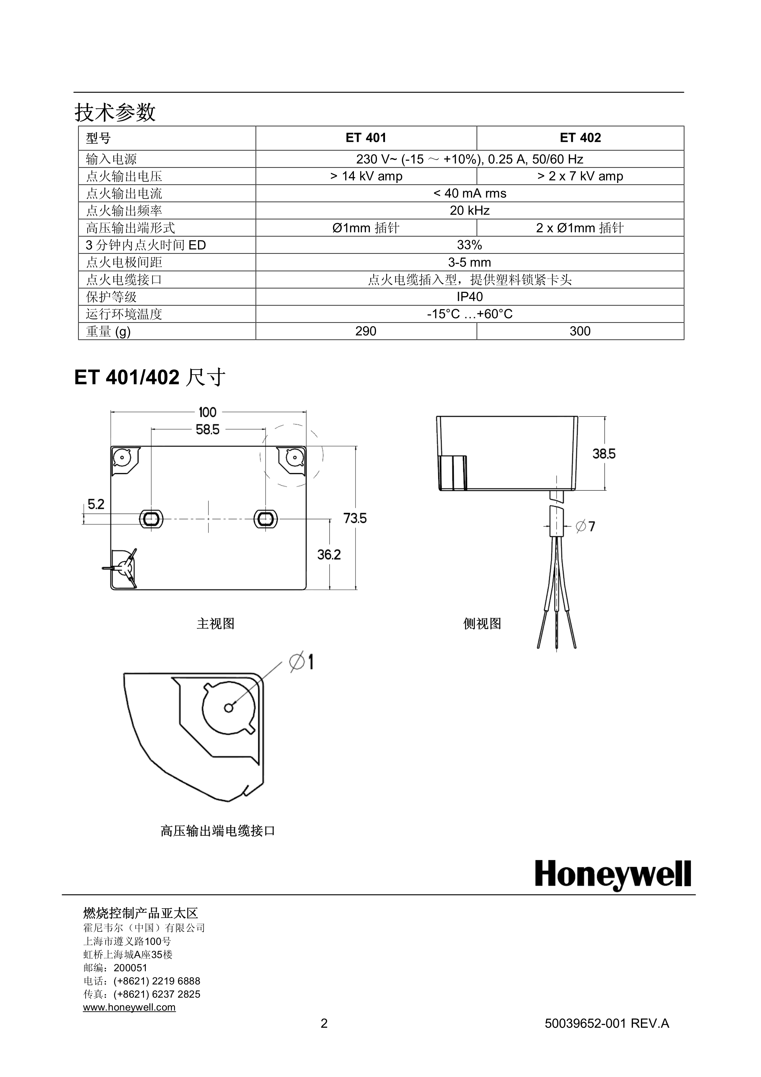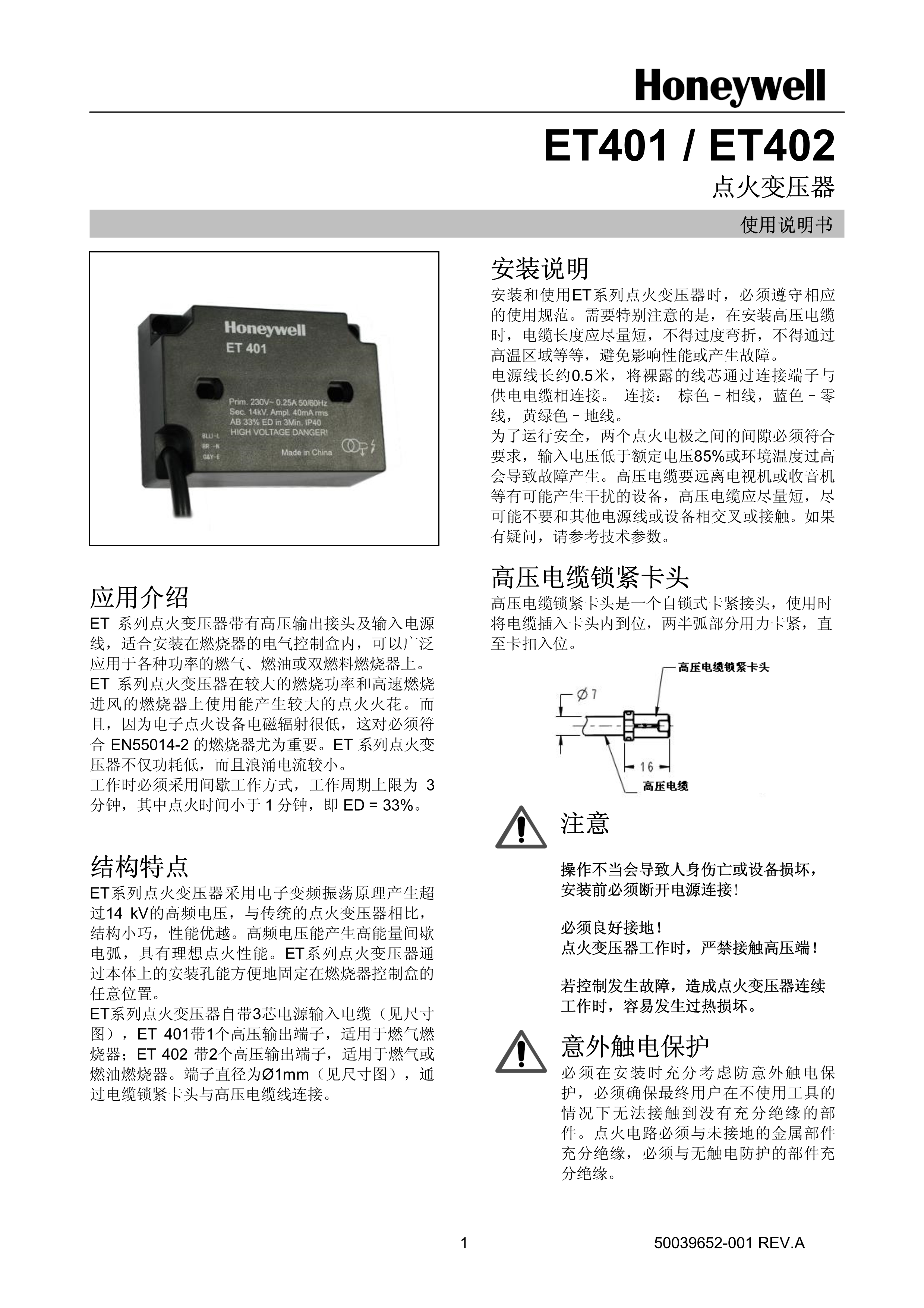 霍尼韋爾ET401/ET402點(diǎn)火高壓包